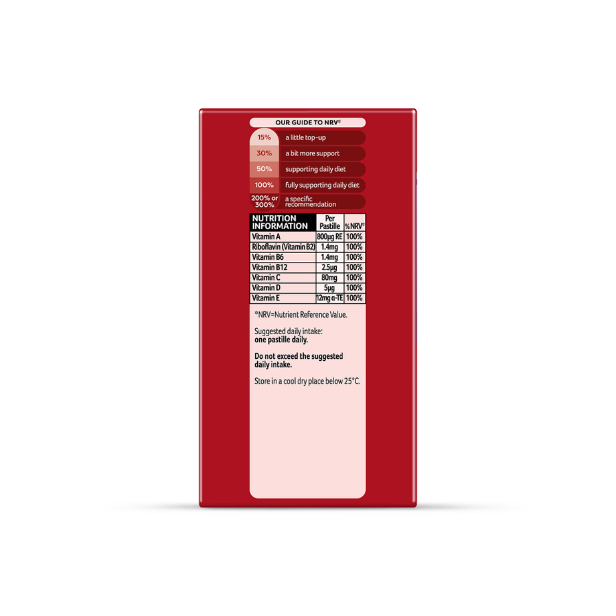 One pastille daily. Do not exceed the suggested daily intake.